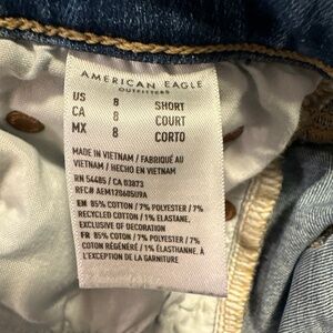 American Eagle Super Hi-Rise Flare Jeans Sz 8 Short Distressed Blue Boho Hippie