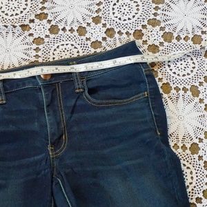 Low-rise jeans from the American Eagle "AEO Sateen X" collection. Excellent quality; no stains, tears, or discolouration from wear! There is however some piling on the inside fabric of the pants. I believe this is due to the type/texture of the soft fabric, as I've only worn this pair a handful of times. Otherwise, they look brand-new!