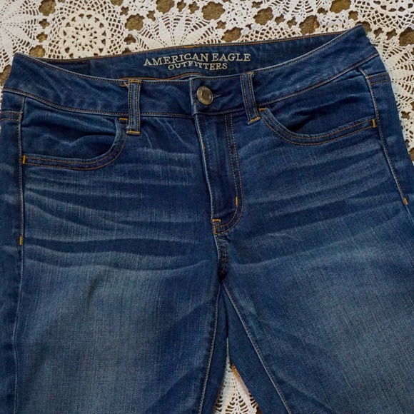 Low-rise jeans from American Eagle. Excellent quality; no stains, tears, or discolouration from wear! I believe I barely wore this pair, they look like they came straight from the store!