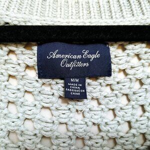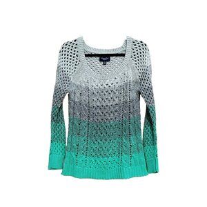 American Eagle Open Knit Sweater Womens Medium Gray Green Cotton/Acrylic
