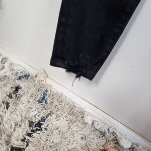 American Eagle The Dream Jean Black Curvy Hi-Rise Jegging Crop Jeans. Button Fly, distressed at the ankle hem but nowhere else. High waisted rise.