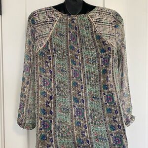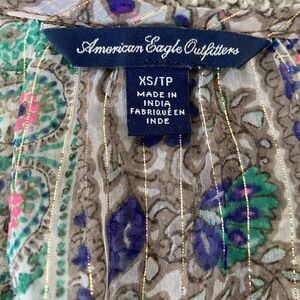 American Eagle Tie Front Printed Long Sleeve Boho Sheer Light Blouse Size XS