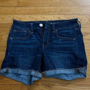 American Eagle shorts, Tomgirl denim, distressed jean shorts, frayed hem shorts, AE size 6, casual summer shorts, soft denim