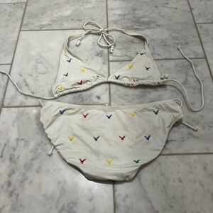 American Eagle White Bikini with Embroidery. Has few stains, shown in pictures.