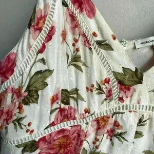 American Eagle White Pink floral jump Suit Romper Wide legged Boho size 2