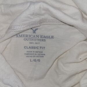 American Eagle White Pullover Graphic Light Hoodie L