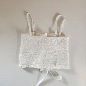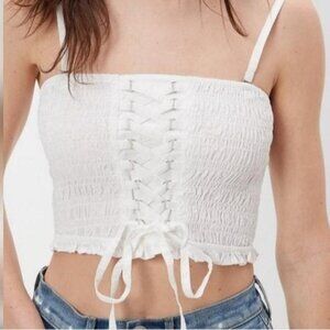 American Eagle White Smocked Lace-Up Tube Top Crop Top