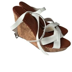 🤎🤍Elevate your style with these chic white strappy wedge sandals. Perfect for any occasion, these wedges offer both comfort and elegance. Minimal signs of wear flaws photographed approx measurements.