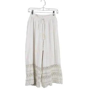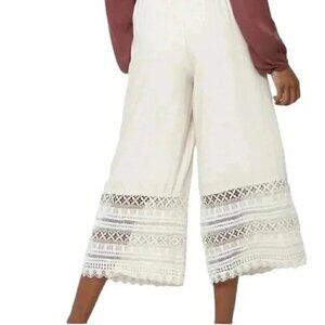 American Eagle Wide Leg Pants with Crochet Bottom Boho Crop Cream Size Small