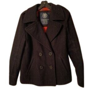 American Eagle Womans Black Wool-Blend Pea Coat: Classic Minamalist Size Med