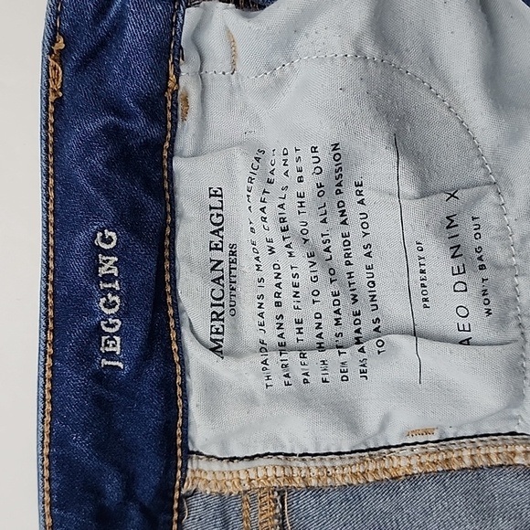 Good pre-owned condition, American Eagle Outfitters Jeggings Super Stretch X denim blue jeans, size 6 Long.