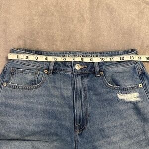 American Eagle Women’s Mom Jeans 6 Long Blue Distressed Straight