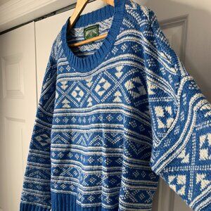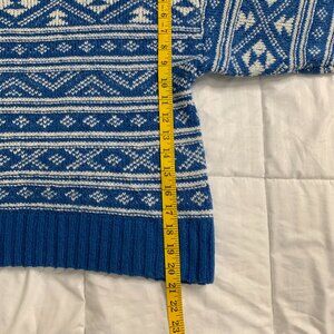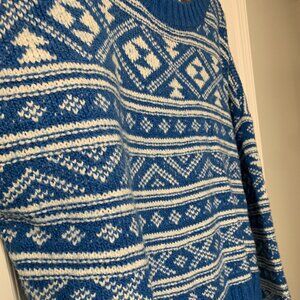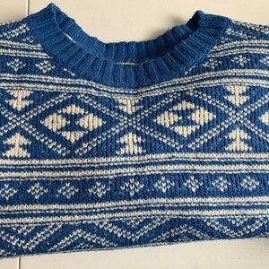 Embrace cozy vintage style with this American Eagle women’s sweater featuring the iconic green AE label, often associated with early-2000s Y2K or heritage-era pieces. This soft and comfortable knit comes in a beautiful blue and white pattern, giving it a relaxed, classic look perfect for cooler days.