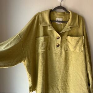 American Eagle Women’s XL Yellow Textured Henley Pullover Long Sleeve Casual Top