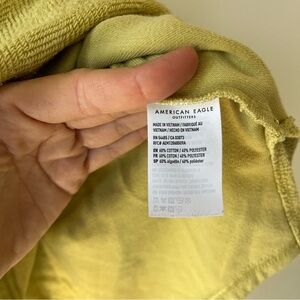 American Eagle top, oversized henley, casual pullover, textured cotton blend, yellow top, relaxed fit, everyday wear, boho casual, women’s long sleeve