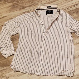 Good condition AE button up shirt. White with purple blueish stripes in a vintage fit