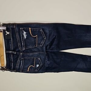 American Eagle dark wash distressed style super stretch cropped jeggings