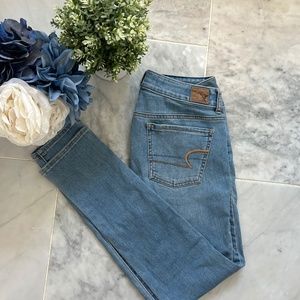 American Eagle light wash slim leg jagging