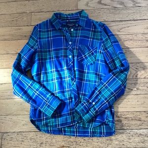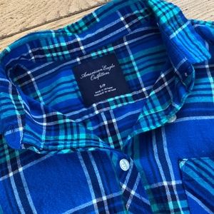 American Eagle lightweight green/blue plaid button down, S