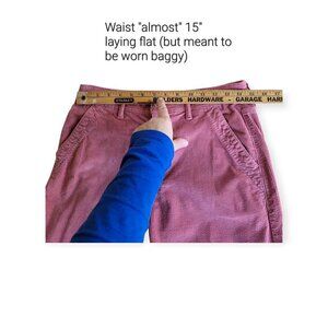 Waist: "almost" 15" laying flat (but meant to be worn baggy)