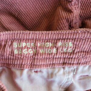 American Eagle pink super high rise baggy wide leg corduroy cargo pants size 6