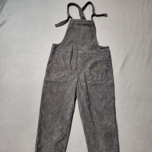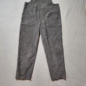 Aerie cord overalls, dark brown / grey mix, relaxed fit with slight taper to the leg, cutoff cropped hem.