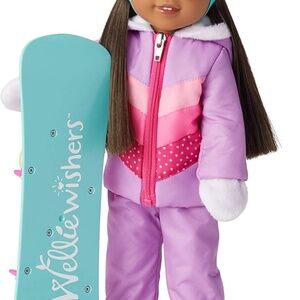 Introducing the American Girl WellieWishers Frosty Fun Snowboard Set for 14.5" Dolls - the perfect accessory for your little one's doll adventures. When the frosty mountains beckon, your little one's dolls will be ready to hit the slopes with this impressive snowboard set. The set includes a vibrant snowboard with a cool winter-themed design and adjustable bindings that can securely hold the dolls' feet in place as they carve through the snow. The American Girl WellieWishers Frosty Fun Snowboard Set is not just any ordinary snowboard set - it is specifically designed for 14.5" dolls like the WellieWishers.