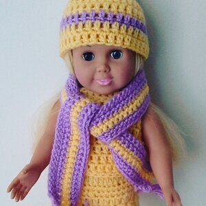 American Girl clothes (or 18" doll) purple & yellow hat and scarf NEW