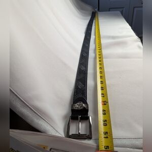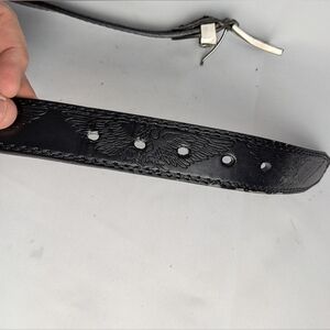 American Pride Black Leather Belt Size 44 With Eagles Pattern Bikercore