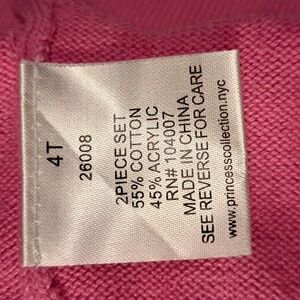 American Princess pink knit sweater with embroidered bouquet, hook & eye closure.