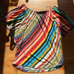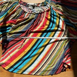 Scoop neckline but it’s stretchy so you can wear it off the shoulders