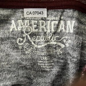 American Republic Gray & Burgandy Long Sleeve T-Shirt