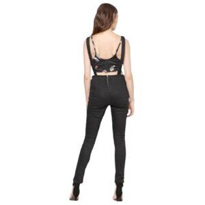 American Retro Stretch Capri Black Denim Jumpsuit Utility suit Overalls S