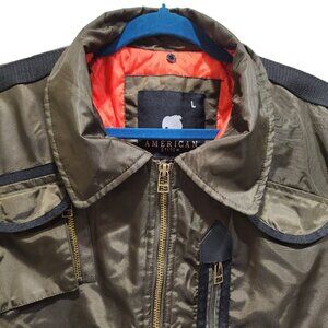 American Stitch Jacket Men's Size L Olive Military Cropped Bomber Full Zip