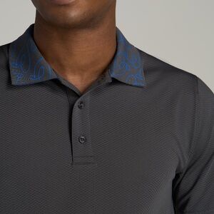 American Tall Jacquard Knit Collar Golf Polo Shirt for Tall Men in Steel Grey Si