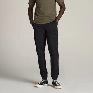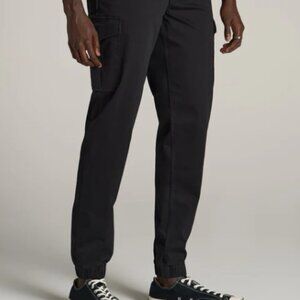 American Tall – Size 28T Black (pair #1) – TAPERED-FIT Stretch Cotton Cargo Jogger Pants for Tall Men