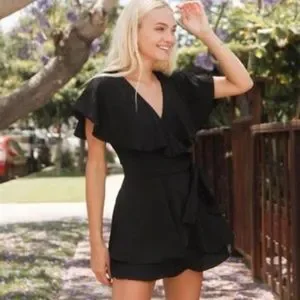 Look no further, your new go-to romper just arrived! The Sky Fall Ruffle Wrap Romper is completed with flowy short sleeves, a back cut-out detail, and a wrap front for a dress look!