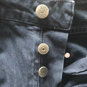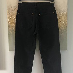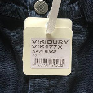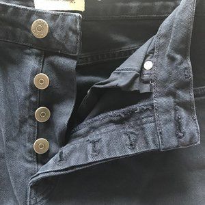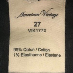 Size: 27. 99% cotton; 1% elastane. Outseam: 37 inches. Inseam: 27 inches. Waist: 26 inches. Hips: 36.5 inches. Rise: 10 inches. Button closure. Side and back pockets. Retails for $198 CAD (plus tax). Excellent condition! New with tags.
