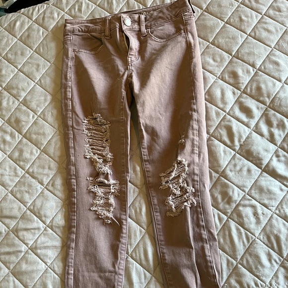 Dusty rose color , stretchy jeans with tears , love them just changing up clothes