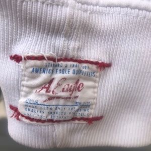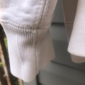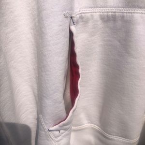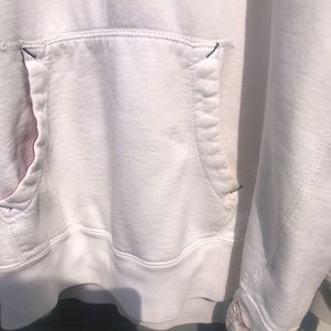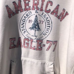 Large White cotton authentic American eagle 77 hoody with red trim pocket. Double lined hood. Distressed symbol grommets in hoody no tie