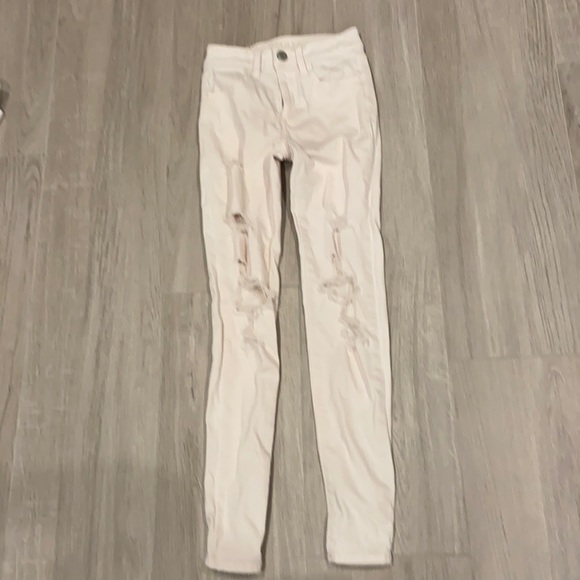 Light pink, ripped, stretchy, and very comfortable as well as flattering! Fits right to your body and perfectly high-waisted! Great condition, worn once!