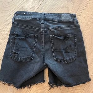 American eagle black denim long shorts size 000. mint condition. Holes in front, lined by pockets.