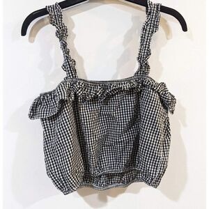 Black and White gingham checker print ruffle crop top with elasticized waist