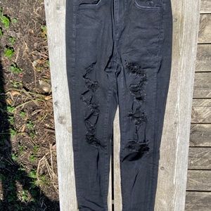 Black American eagle jeans, selling because I don’t wear ripped jeans anymore. dm me on ig for better quality pictures, didn’t realize how zoomed in they’d be @gitakhann
