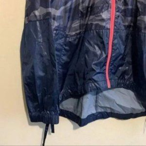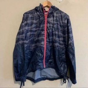 American eagles outfitters blue army print windbreaker or light weight rain jacket. Can be folded and tucked into a purse. Neon pink zipper. In excellent condition. Large size. Bundle with other items to save on shipping plus 15% off three or more items. Ask if have any other questions.