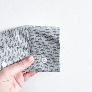 American Eagle Mens Button Down Shirt Seriously Soft Shark Print Gray Large
