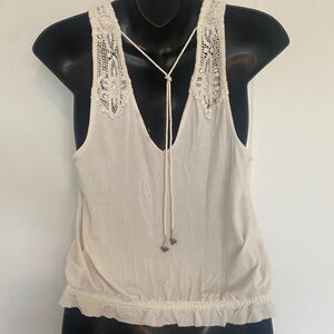 American Eagle Outfitters White Eyelet V-Neck Tie-Back Top Size Small