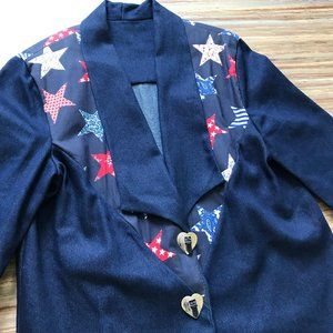 Americana Western Blazer Jacket Denim & Star Print with Concho Snaps Home Made