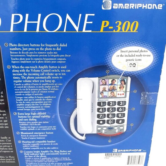 Ameriphone P-300 Clarity Amplified Photo Phone with Wall Mount Manuals and Box