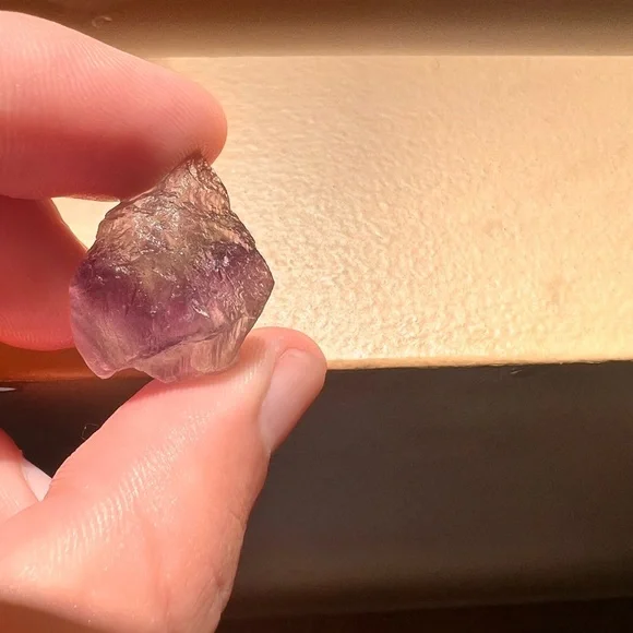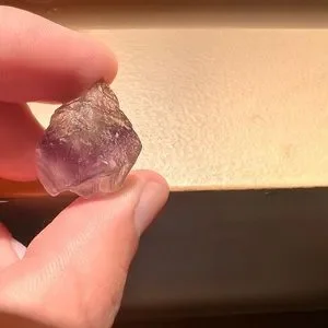 Small Amethyst crystal i found up north. Not exactly sure where. It has clear and purple lines throughout the gem.